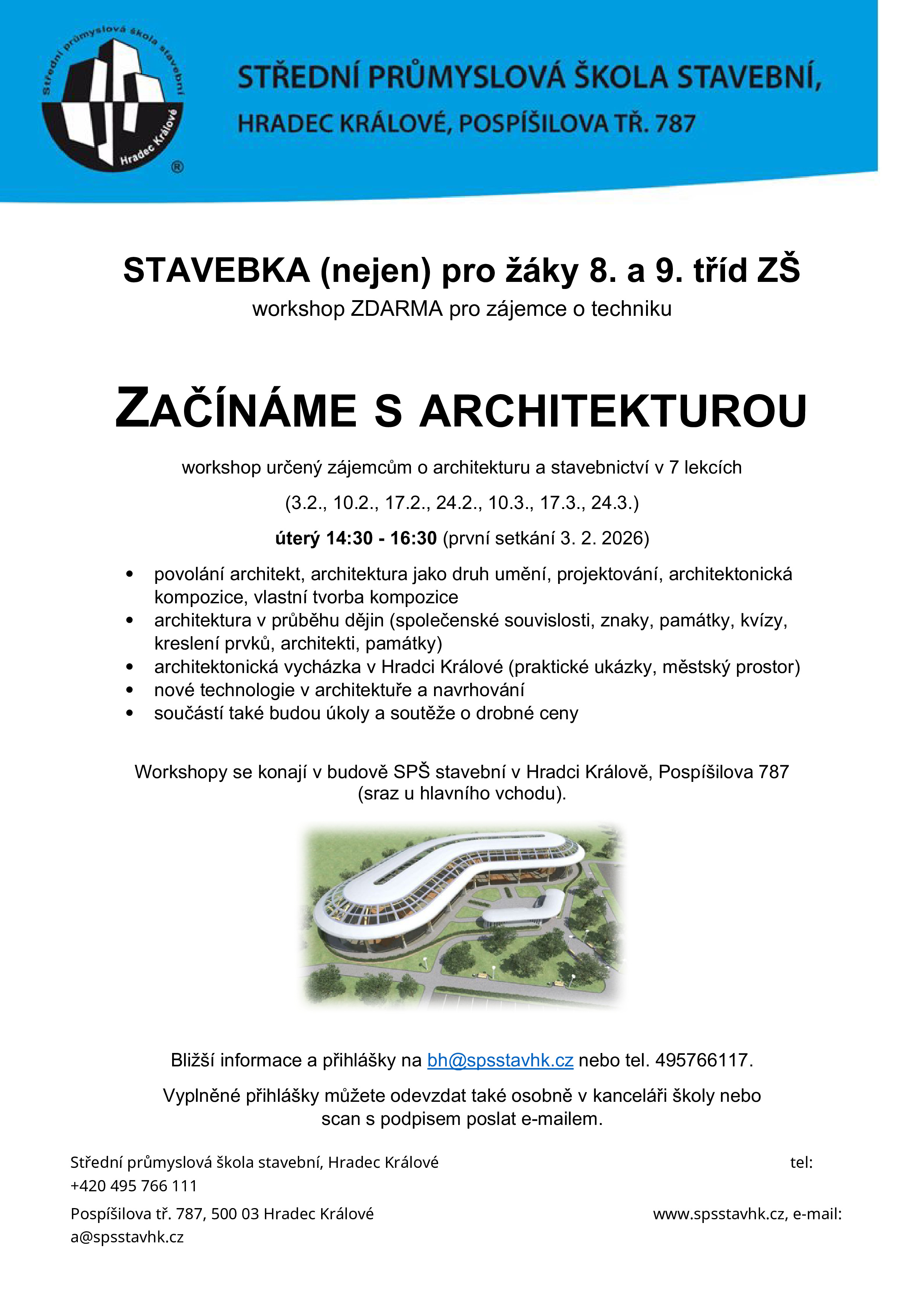 Bližší informace a přihlášky na bh@spsstavhk.cz nebo tel. 495766117.