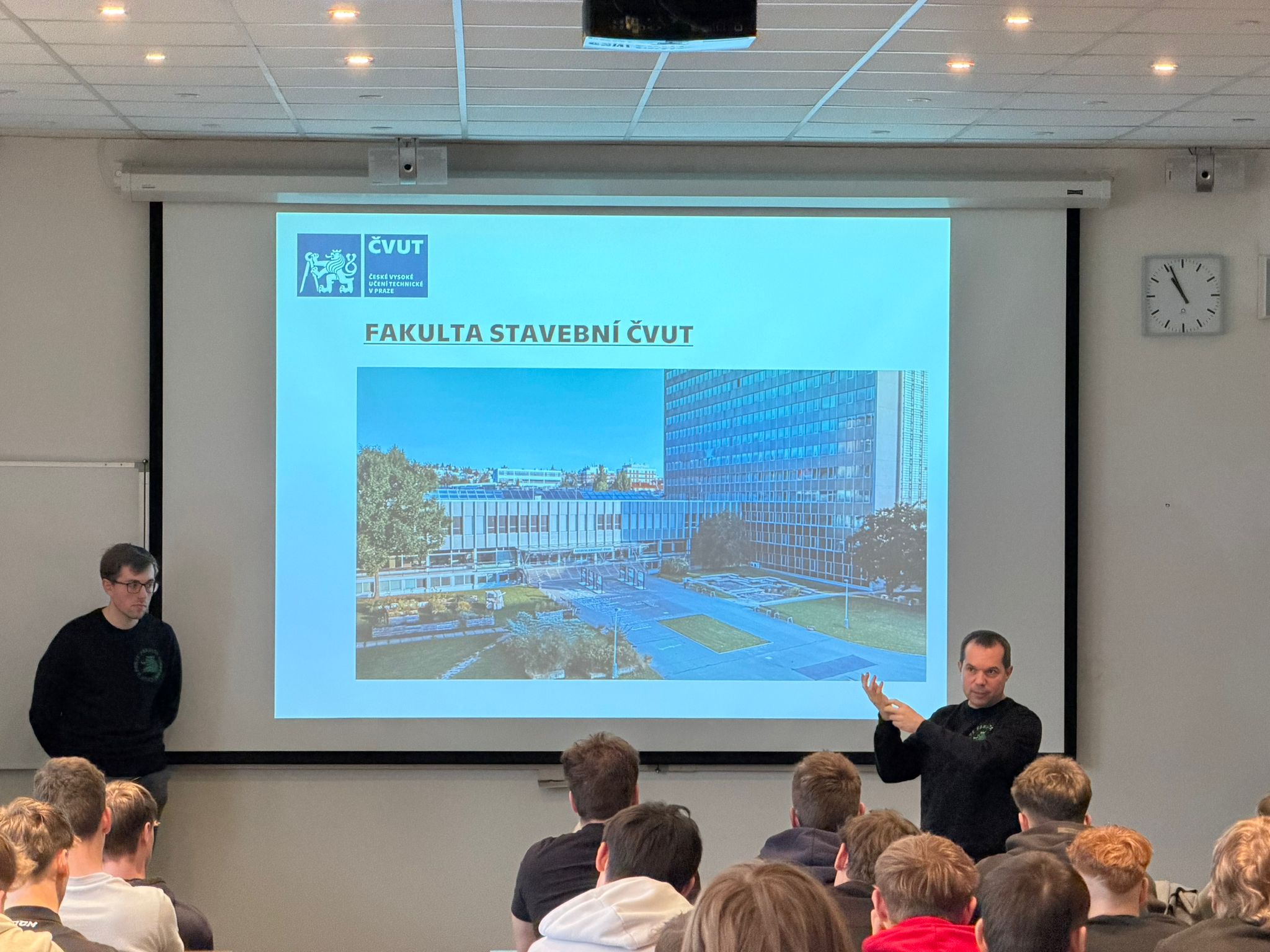 Zajímavou besedu pro naše čtvrťáky o studiu na stavební fakultě ČVUT připravil prof. Ing. Petr Štemberk, Ph.D., D.Eng. spolu s naším absolventem Janem Kindlem.